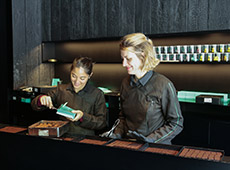 サンジェルマン・デ・プレ店の客層は幅広く、年齢、国籍もさまざま。自分のために購入する人もいれば、贈り物用に大きな箱詰めを選ぶ人もいる。そのため、商品は食事に招かれた時などの手土産用の500ユーロ近い大きなサイズのものから、4個入りのミニパッケージまで幅広く取り揃えている。