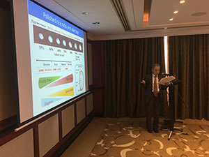 併催した日本酒普及セミナーでは、日本酒造組合中央会の濱田由紀雄理事が日本酒の特徴や製造方法など日本酒の基礎について講演した。また、Wine & Spirit Education Trust(WSET)認定講師のリー・ハドソン氏が日本酒とワインの違い、西洋料理とのペアリング方法について詳しく解説した。