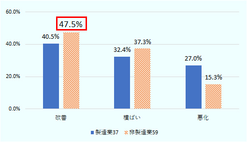 一方、2021年の営業利益見込みは、悪化が製造業27.0%、非製造業15.3%だった。逆に、改善と回答した企業は製造業が40.5%、非製造業が47.5%だ(図3参照)。改善の理由として、70%以上が輸出、現地市場の売り上げ増加を見込んでおり、新型コロナ後の経済復活への期待が込められていると考えられる。