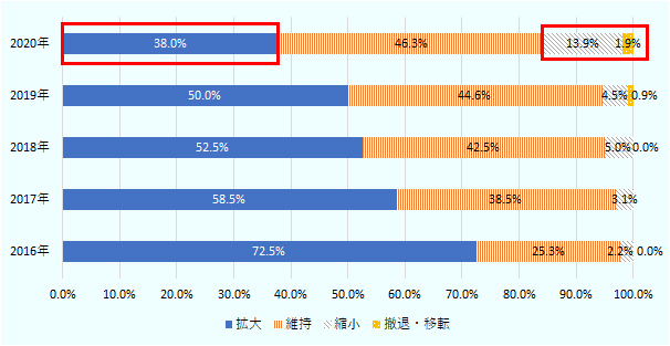 | 従業員の賃金上昇 | 69.70% | 82.80% | 70.90% | 75.70% | 55.20% |