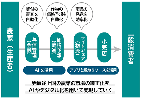 - AIを使った与信判断、農業金融に物流を組み合わせていることだ。フードバリューチェーンのDXや農家に対するマイクロファイナンス事業といった個々の課題に取り組むスタートアップは、世界的にもトレンドになりつつある。だが、「農協」というコンセプトで、農家を軸とした仕組み自体を新たにデジタルの力で創出し、農業全体に関わる社会課題を、金融と物流を掛け合わせて解決しようとするビジネスモデルは世界でもほとんどないと思う。