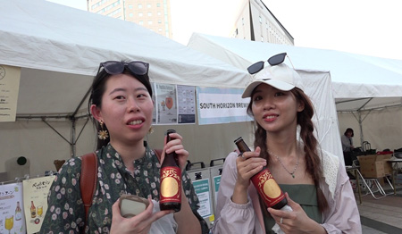 四国産クラフトビールを購入した台湾人女性(ジェトロ撮影) - クラフトビールが気に入ったので3本購入した。IPAがおいしかった。韓国人には、私が買ったビールが合うと思う。