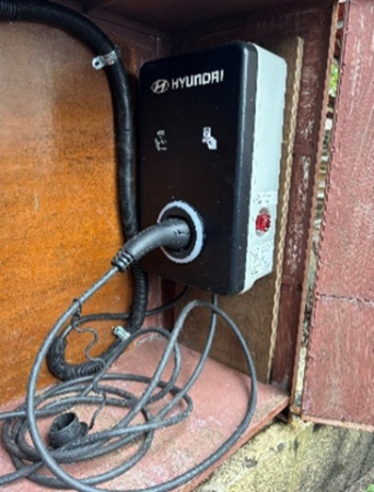 集合住宅の駐車スペースに充電設備を設置した例(ジェトロ撮影)