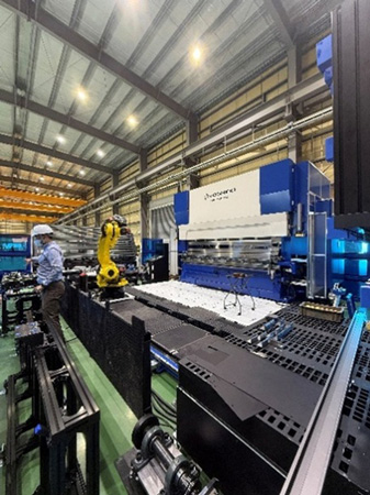 。同社は、油圧を一切使用せず、サーボモーター駆動で板幅6メートルの大型規格の板金加工が可能なプレス機械を主力製品とする。モーター駆動のプレス機械は海外でも増えているが、同社の機械は、世界最大規模の板金加工が可能な点が特徴だ。