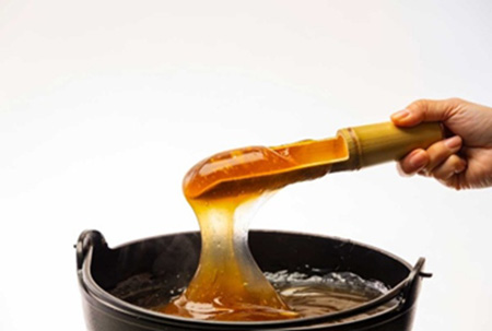 そもそも、わらび餅は、わらび粉、水、砂糖を鍋で火にかけ、冷やし固めた菓子だ。主材料のわらび粉は、山菜のわらびから作る。原料になるのは、葉や茎ではなく根の部分。そこから採れるでんぷんを乾燥させて粉末状にする。こうした製法は、日本人でもなかなか知らないだろう。食べ方としては、きな粉や黒蜜をかけるのが一般的だ。