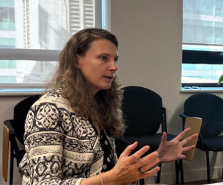 インタビューに応じるアナ氏(ジェトロ撮影)