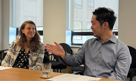 インタビューに応じるアナ氏と髙井氏(ジェトロ撮影)