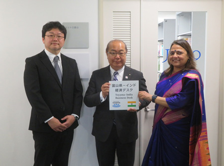 インドに対する富山県企業の関心の高まりを受け、インド経済訪問団の派遣を具体的なビジネス支援につなげるべく、ジェトロは2025年4月、富山県庁と連携して、インドビジネスの相談対応や現地情報の収集・発信を行う窓口である富山県・インド経済デスクを開設した。インドビジネスに関する相談対応窓口として、情報提供や現地企業とのマッチングなどをサポートしている。開所式に出席した新田八朗知事は、訪印した際の印象を踏まえ「インドは新たな販路となる可能性がある。県としてサポートしていきたい」と述べた。