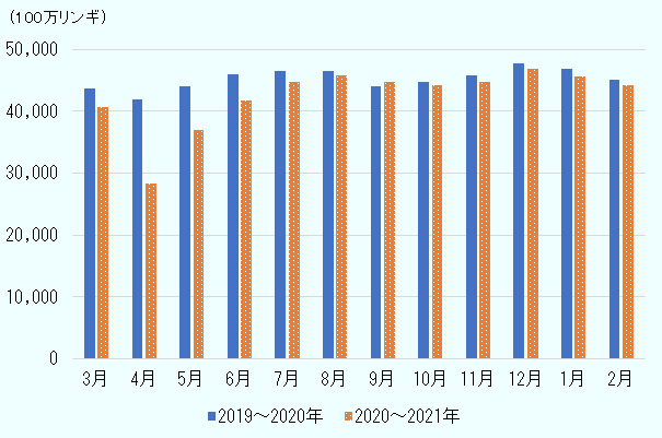 注:3~12月は2019年と2020年の比較、1~2月は2020年と2021年の比較。