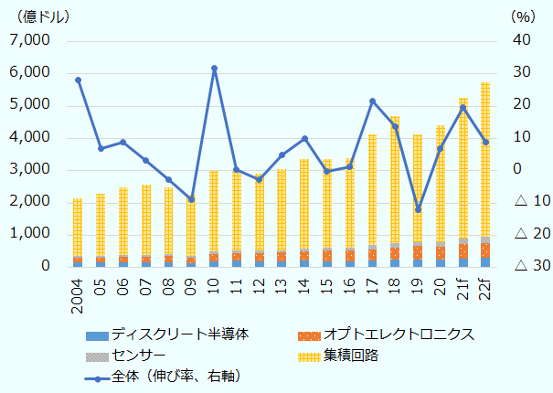 新型コロナウイルスのパンデミックを契機としたデジタル化やそれに伴うインフラ整備の加速、各国の緩やかな経済回復を受け、半導体関連商品の需要が高まっている。世界半導体市場統計(WSTS)によると、世界の半導体市場は2020年以降拡大を続け、2021年には過去最高の水準に達する見込みという。他方、供給面では需要過多や輸出管理規制の強化、災害や事故などによる混乱が生じ、供給不足の深刻化が懸念されている。各国および主要企業は生産能力の強化や安定したサプライチェーンの構築を目指す動きがみられる。
