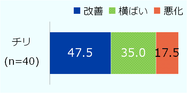 一方で、2022年の営業利益見込みについては、比較的慎重な見方が多かった。2021年と比べて「改善」とする回答は、20.0%にとどまった。65.0%が「横ばい」を選択している(図2参照)。中南米全体平均と比較しても「改善」の割合は非常に少なく、「横ばい」の割合が多い。年金引き出しによる消費の押し上げ効果が2021年のように期待できないことに加え、銅価格も落ち着いていくことなどがこの背景にあるとみられる(注2)。