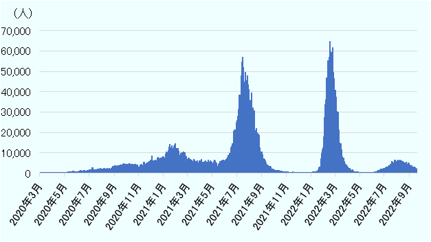 インドネシアにおける新型コロナウイルスの感染拡大状況を振り返ると、2020年3月2日に初の新型コロナウイルス感染例が発表されて以降、2020年から翌年初めにかけて徐々に全国に拡大していった。その後、2021年7月にはデルタ型変異株、2022年2月にはオミクロン型変異株により、爆発的な感染拡大が発生した(図1参照)。日系企業でも多数の従業員に感染が広がるなどの影響があった(2021年7月9日付ビジネス短信参照)。