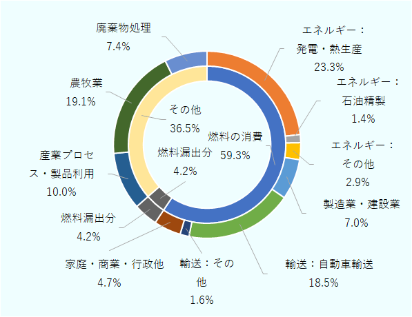 注:土地利用、土地利用変化および林業(LULUCF)分野のGHG排出・吸収量を除く。