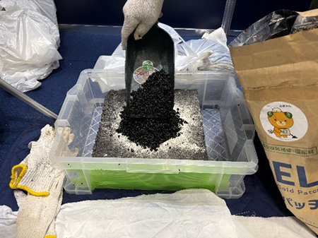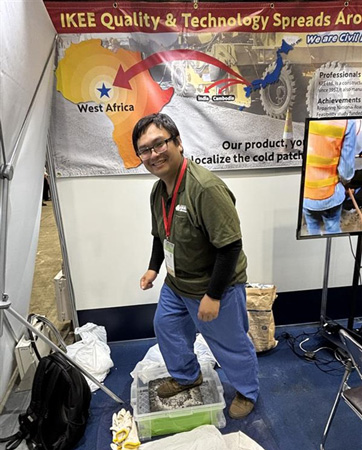 - 官公庁向けビジネスがメインなので、いかに現地政府に伝えるか、伝わるかが重要だ。体験に勝る感動はないので、実際に穴を「エクセル・パッチ」で埋め、踏み固める体験してもらいたいと思った。