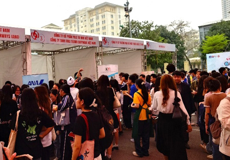 - 全学でのジョブフェア「ULIS Job Fair」を毎年3月頃に開催している。フェアには、日本からの参加企業だけでなく、在ベトナム日系企業、ベトナム企業、韓国企業など、約50社がブースを出展している。例年、学士課程の2~3年生が多く参加している。