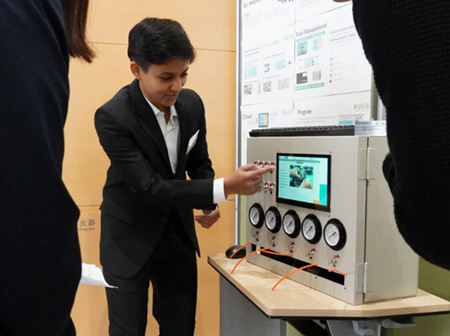- 英語対応できる担当者のいない企業もある。しかし、留学生は日本語で日常会話はできる。日本人学生からサポートを受けながらコミュニケーションを取っている。同時に、図面や実際に使う装置や試作品を用いて話すことで、日本語・英語を交えて技術的な内容を理解し合うという体験も貴重だ。また企業にしてみると、外国人材と共に課題解決する経験を積める。これは、外国人材を採用する第一歩になる。