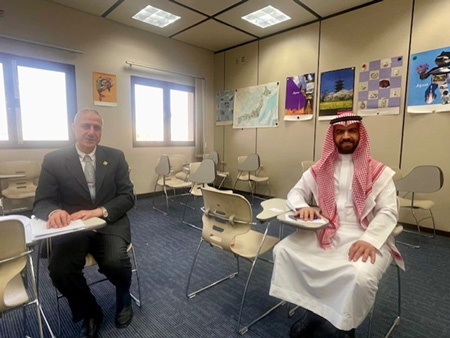 キングサウード大学(以下、KSU)は、サウジアラビア初の国立大学として1957年に首都リヤドに設立された。国内トップクラスの総合大学であり、その教育・研究力は国内外から高い評価を受けている。2025年には米国の3大学(ディジペン工科大学、ノースウェスタン大学、シカゴ大学)との戦略的パートナーシップを発表するなど、国際連携を積極的に推進している。これらの提携により、言語教育の高度化や多言語コミュニケーション研究の発展が期待され、学生が実践的な語学運用能力と国際的視野を身につけるための学術交流を推進している。今回、日本語専攻の現状、さらには日本企業との連携状況や今後の取り組みについて、同大学の言語科学学部欧州・東洋言語学科日本語専攻のファーリス・シハーブ教授と、同専攻ヤジード・アルドゥライミ日本語専攻課程コーディネーターに聞いた(取材日:2025年12月22日)。