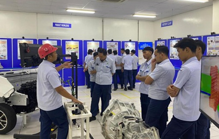 - また、日本の生産拠点と同様に「DOJO」(道場)と称する研修施設を拠点内に設けている。模擬設備による不安全行動の体験や不良品の発生による完成車の性能への影響などを学ぶことで、日々の安全や品質向上に関する知識を醸成している。