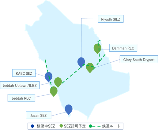 サウジアラビアでは7カ所の特別経済区(SEZ)が認可されている(2024年1月15日付地域・分析レポート参照)。SEZでは、入居企業に対して税制優遇、100%外資所有の許容、簡易通関優遇措置などの特典を提供している。このうち「物流専用のSEZ」として認可されているのは、リヤド・インテグレーテッド・スペシャル・ロジスティクス・ゾーン(SILZ)のみである。ドイツの物流大手DHLはSILZに物流拠点を設置している。SEZとは異なるが、デンマークのMaersk(注2)はサウジアラビア港湾局(Mawani)と協力してジッダ・イスラム港に統合型物流パークを開設した。