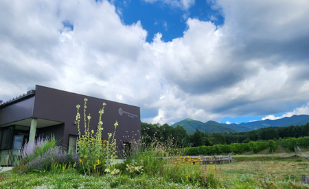 - (鷹野氏)高山村はユネスコエコパークに認定されている自然環境の豊かな地域。また、サステナビリティへの取り組みにも意欲的であり、醸造から出る廃棄物も全て村内で循環させている(注2)。そうした生産背景や環境も、アピールポイントとして主張していきたい。現在、高山村には計7軒のワイナリーがあり、1年に1軒のペースでその数が増えてきたことになる。小さくても高品質なワインを生産するワイナリーが点在する地域で、ワインに限らず、ポテンシャルの高い地域の食のコンテンツは多く存在すると認識している。地域の課題を挙げるなら、そうした地域の魅力に付加価値をつけてPRする地域総合商社的な主体がまだ確立されていないこと。当社のワイン造りを通して、海外にその魅力を発信していきたい。