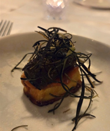 パリパリ昆布のせ (同社提供) - (杉谷氏)今後、商品選定や価格などの相談を受けたときに判断するためにも、自分の目で現地を見ておきたかった。今回の滞在では12軒のレストランを回り直接話をした。時間はかかるが、やはりこういったやり方が重要だ。代理店にポンと投げたらすっと広まるなどということはあり得ない。エネルギーが必要だが、その分成果はある。今後も今回のように直接会っていくことで、客先を広げられるだろうという実感を得た。
