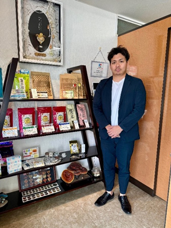 (熊本県熊本市)は、健康に配慮した、薬草・穀類のブレンドティー「健成茶」「善玉茶」などの健康茶を製造し、ECを中心に主に消費者に直接販売するメーカーだ。黒豆茶やルイボスティー、ティーバッグ型のテトラコーヒーなども扱い、健康茶専門店としてオーガニック、無添加にこだわった自社商品を開発する。自身の海外経験を活かし、さらなる事業成長に向けて輸出ビジネスの先頭に立つ営業部長濱田英佑氏に今後の展望について聞いた(取材日:10月8日)。同氏は、海外ビジネス人材育成塾(以下、育成塾)や育成塾プラス(輸出経験者を対象として海外バイヤーとの商談力強化を目的とするアドバンスコース)をきっかけに台湾市場展開を進めている。