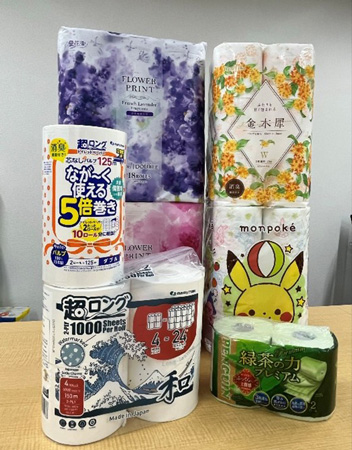 多様なラインアップを取りそろえる同社のトイレットペーパー商品(ジェトロ撮影)