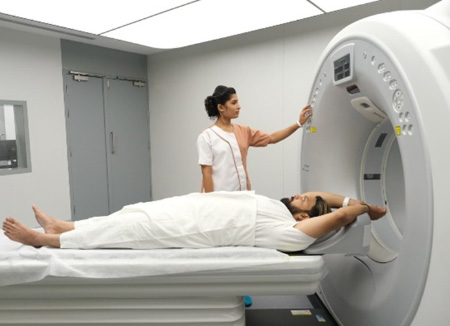 超低線量CTで全身検査をする様子