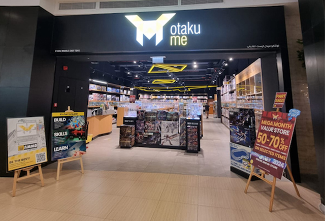 UAE および 湾岸諸国(GCC) 最大のプラモデルホビーショップ。 「タミヤ」や「バンダイ」など日系ブランドの販売代理店。「ガンダム」、「鬼滅の刃」、「ワンピース」など、ホビー用の組み立てキット、スケールモデル、ホビー用塗料、艶出し、工具、消耗品などを扱っている。店舗内には組み立てたミニカー用のレーストラック(写真参照)や組み立て方を教え、車体やプラモデルにペイントを施し、アクセサリーを付け加えるなどの作業を行う施設もある。客層は家族連れなど、7歳児から大人まで幅広い。「ガンダム」は特にUAE人に人気がある。「ワンピース」、「鬼滅の刃」などは若い層に人気がある。飛行機、ミニカーも人気があり、特にミニ4WDが好評で毎週日曜日に室内サーキットでレースを行なっている。また、レース大会も開催しており、優勝者は日本でのタミヤ主催のレースにも参加しているとのこと。商品の種類、値段についてはサイトを参照。(Otaku ME | Your #1 Hobby destination in the Middle East!
