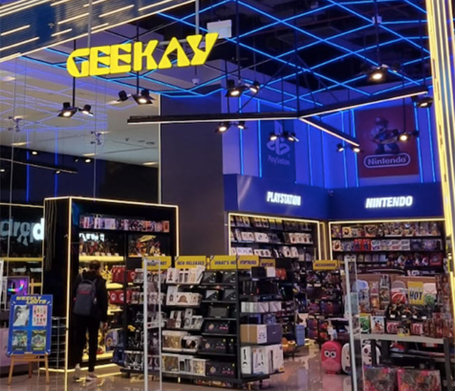 GEEKAYは大手ゲーム小売業者であり、UAEを始め、クウェート、オマーン、バーレーン、カタール、サウジアラビアに25店舗を展開している。ビデオゲーム、ゲームアクセサリー、最新のゲームコンソール・ハードウェアーやフィギュアを扱う。 「バンダイ」、「コトブキヤ」、「SIDE SHOW」等のフィギュア、「ATLAS」、「Warner Bros. Games」、「505 Games」ゲーム等その他多数の商品ブランドを販売。 店内には中東でも人気がある最新の「Play Station」や「Nintendo」のゲーム機器やソフトが多数販売されている他、コレクターが多い、米国や日本のアニメアクションフィギュア商品、また、比較的安価な「Funko」や「キューポスケット」のフィギュアもドバイ在住者を中心にプレゼント用に購入されていると言う。値段、種類についてはサイトを参照。(Geekay Online Store - Game On!