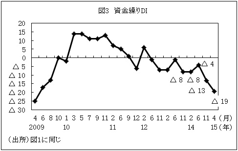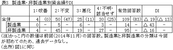 資金繰りDIは前回より6ポイント下落し、2009年6月の状況より悪いマイナス19を記録した(図3参照)。9回連続でマイナス圏にあり、非製造業に比べ、製造業で深刻な状況となっている(表3参照)。ルーブル安や金利上昇による貸し倒れリスクの増加、支払い繰り延べ、外貨建て契約支払い額の増加、インフレ高進によるコスト増などが資金繰りに悪影響をもたらしている。