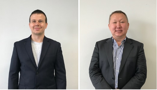 左:フィットネストレードのアナトリー・ワリシニコフ社長、右:ビオスティムルのイーゴリ・ビテシェフ社長(ジェトロ撮影)