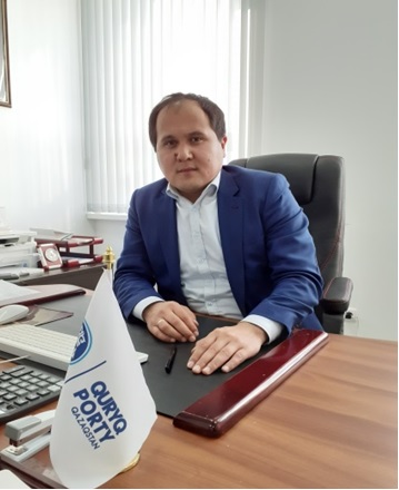 クリク港のタルガット・オスパノフ副社長(ジェトロ撮影)