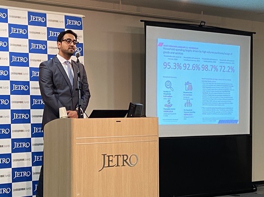 ユーロモニター・インターナショナルのラフル・ジャワレ氏の講演(ジェトロ撮影)