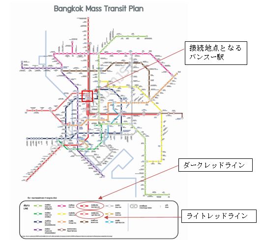 同事業は、バンコク首都圏鉄道マスタープラン(M-MAP)に基づくプロジェクトの1つで、バンコクの南北線(ダークレッドライン)および東西線(ライトレッドライン)の2路線をバンスー駅で接続し、近隣からバンコクへの乗客と旅行者の利便性を図るもの。