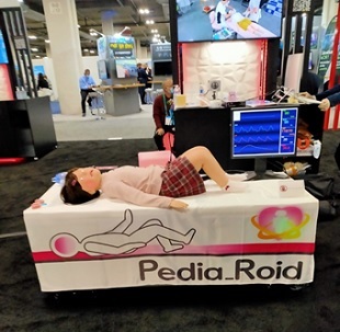 また、治療を嫌がる小児患者を模した臨床用ロボットを出展したテムザック(本社:福岡県宗像市)も、そのリアルな反応から、多くの人の注目を集めた。製品の説明をしていれた松尾潤二総務部長は「訪問者の興味は高く、反応は上々。AFP通信やウォールストリート・ジャーナル紙からインタビューを受け、自社製品をアピールすることができた」と話した。