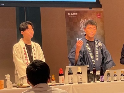 セミナーでは、農林水産省が任命した日本食普及親善大使の小川洋利氏が「漬け」「酢締め」といった調理法や「手酢」といった寿司(すし)握りの技法など、食材を長持ちさせる衛生面での発酵調味料の活用を紹介した。また、一般社団法人木桶仕込み醤油輸出促進コンソーシアムの蜷川泰輔氏と弓削多洋一氏が醤油(しょうゆ)の歴史、発酵技術、製造方法などへのこだわりや魅力を説明した。