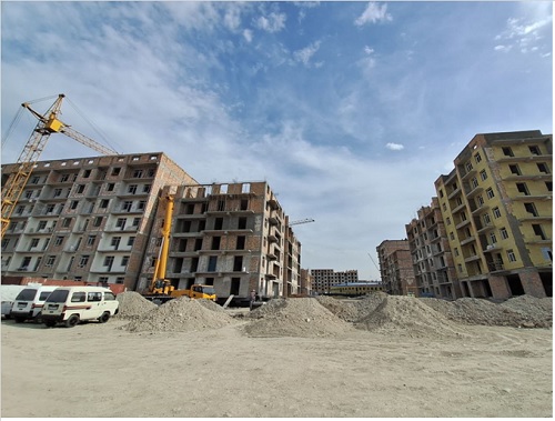 ウズベキスタン各地で進む住宅建設、フェルガナ市「エコシティー」事業(3月18日、ジェトロ撮影)