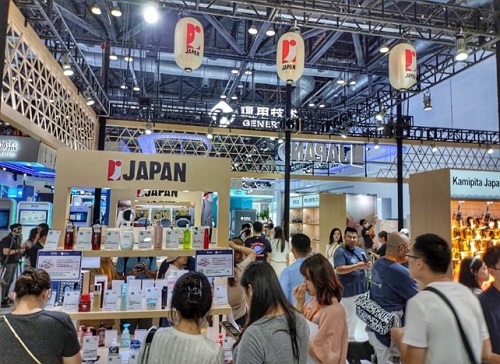 ジェトロは同交易会に「オフラインとオンラインの融合」をテーマとした266平方メートルの日本館を設置し、食品・飲料、高齢者福祉、美容・健康、生活関連用品や工芸品、コンテンツなど34社の商品を展示したほか、日本企業の中国バイヤーとのビジネスマッチングの機会をより増やすために、来場した中国バイヤー向けにWeChat上の中国語オンラインカタログ「JETRO日本商務館」(CJS)サービス