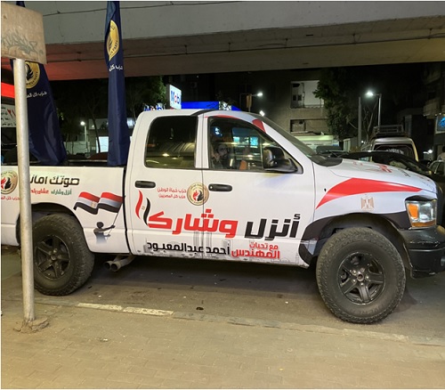 カイロ市内で投票を呼びかける車両(ジェトロ撮影)