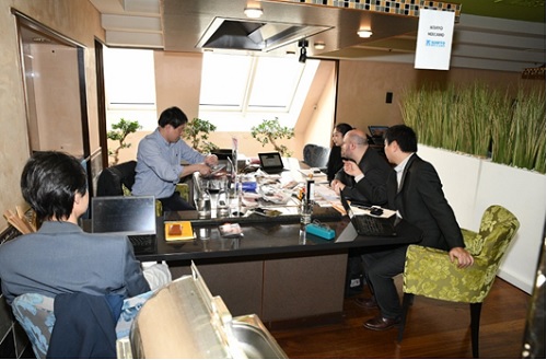 同商談会は、前日8日のポーランド・ワルシャワでの商談会と一連のものとして開催した(2024年2月15日記事参照)。9日午前の商談会には、サプライヤーとして、日本から、味の加久の屋(青森県八戸市)、林泉堂(秋田県横手市)、三山グリーン(千葉県船橋市)、対馬水産(長崎県対馬市)の4社、欧州からは北海水産(オランダ)、交洋(オランダ)、シーフードコネクション(オランダ)、JFC(オーストリア)、稲畑産業(ドイツ)の5社の計9社が参加した。バイヤーは、中・東欧地域6カ国(オーストリア、ハンガリー、チェコ、ルーマニア、ブルガリア、オランダ)から10社の輸入業者やレストラン関係者などが参加し、各社30分ずつの商談によって新たな商流の構築を図った。午後は、自由回遊型試食会を行い、約40人のレストラン関係者などが参加した。10日午前には、サプライヤー向けに市場視察を実施した。