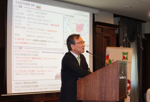 基調講演では、道上尚史・駐ブルガリア大使がブルガリアの魅力を2つのポイントで説明した。1点目は、技術・IT分野で高度な人材を有することや、労働コストがEU域内で最低レベルといったビジネス環境にあるとした。2点目は、ブルガリアがEUやNATOに加盟し、両組織との関係が非常に強固な点だとし、日本が同国とビジネス関係を築く上での「安心材料」になるとした。