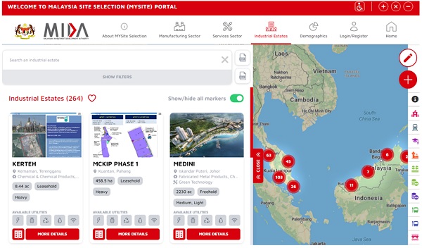 マレーシア投資開発庁(MIDA)は12月11日、マレーシア全国の工業団地の情報を閲覧できるデジタルプラットフォーム「マレーシア・サイト・セレクション・ポータル(MYサイト・セレクション・ポータル)