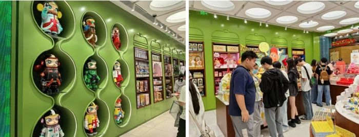 ショッピングモールなどの商業施設では、デザイナーズトイ経済を活用して客を呼び込み、消費を促進している。