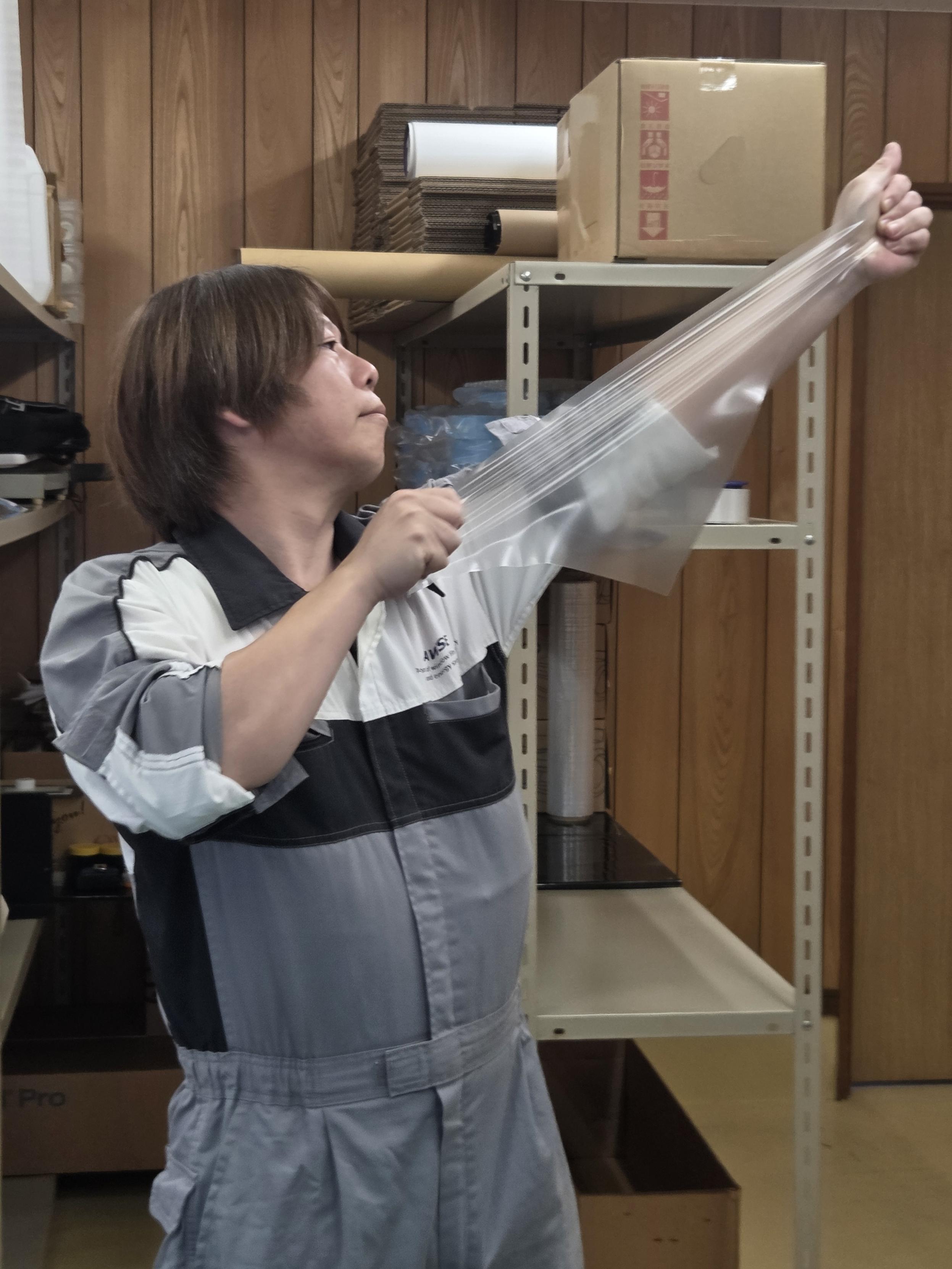自社製品でラッピングをしている様子