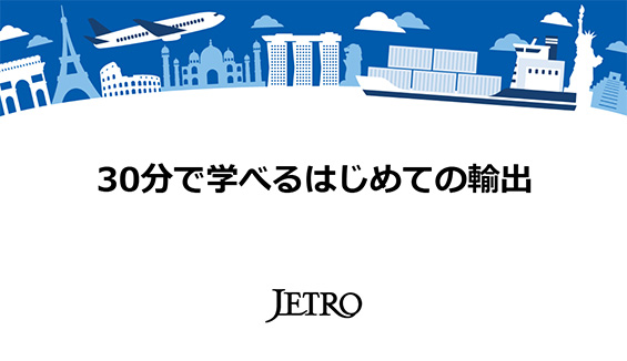 「30分で学べる初めての輸出」は、輸出を始めてみようと考えている皆様に、具体的にどんなステップを踏んでいけばビジネスチャンスにつなげていくことができるかということを、30分という短時間で学べる講座です。