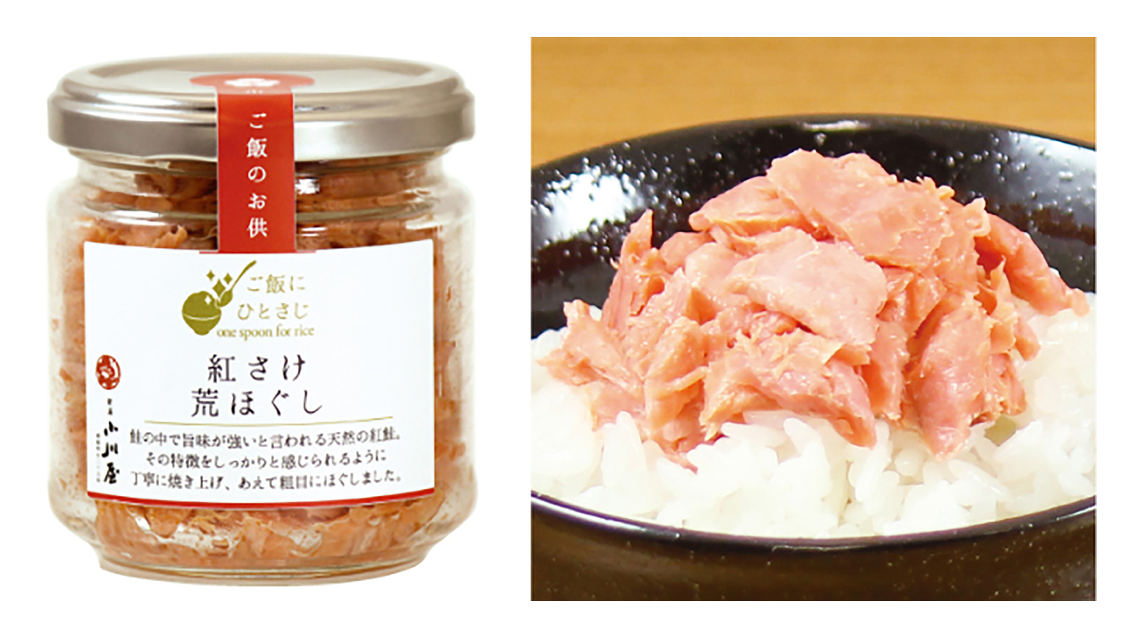 A simple product made by carefully grilling high-quality sockeye salmon and loosening it slightly. Sockeye salmon is said to havea particularly strong umami flavor among salmon, and the finished product allows you to fully enjoy that umami flavor.