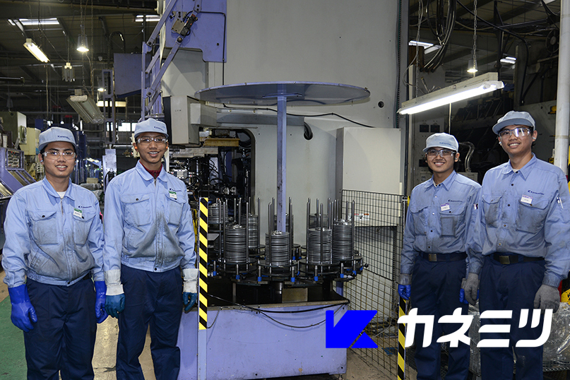 Kanemitsu has grown as a leader in the manufacturing sheet metal pulleys for automobiles industries, and it's not overstated to say our products are in almost every single car in Japan today. Since our 1st overseas site in Thailand was established in 1999, we have expanded our business into China, Indonesia, and India. In 2007, furthermore, a Technical Center was also made in Thailand under our philosophy of "Kanemitsu Respects Technologies", enabled us to invite engineers through a technical trainee system to Japan, and make them become worldwide leaders. For sustained growth of our global profitability with the next generation products development, we are enforcing to improve and promote diversity in the workplace for all employees under one corporate policy. Now we have 35 foreign technical trainees and staffs from overseas sites, out of 322 domestic employees. We do not embrace status quo but continuously aim for developing more diversified workplace.