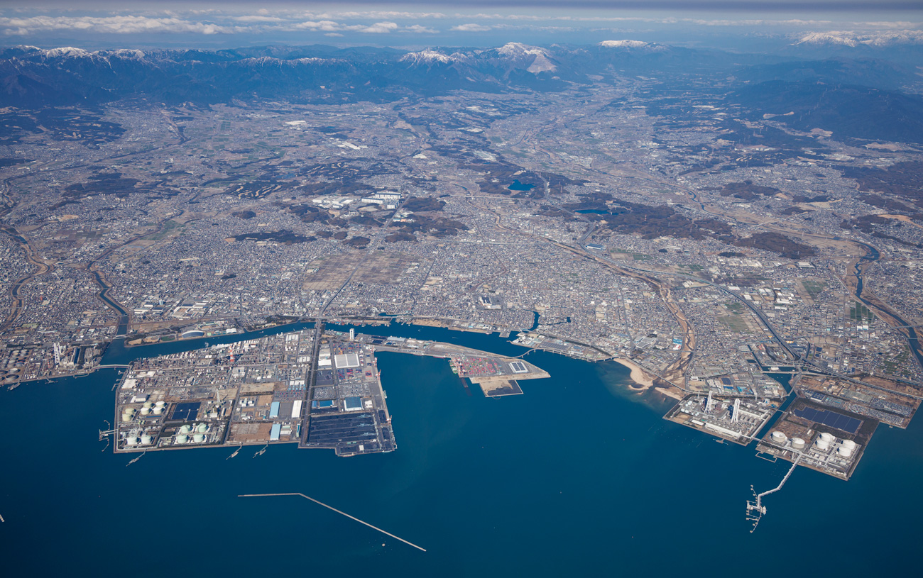 Aerial view of Yokkaichi City, Mie Prefecture, where semiconductor-related companies are clustered.