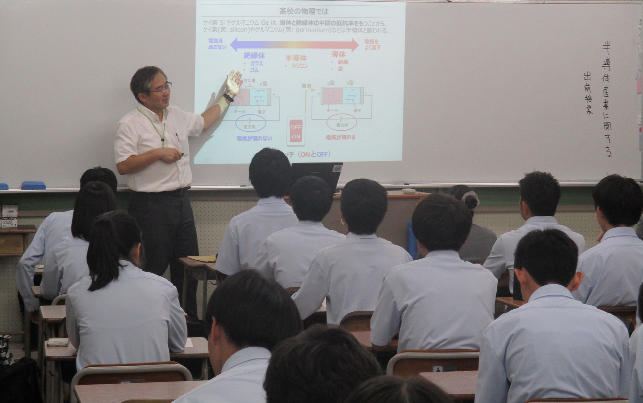 Professor Hideto Miyake of Mie University (Electronic and Information Engineering) delivers an outreach lecture on semiconductors at a high school